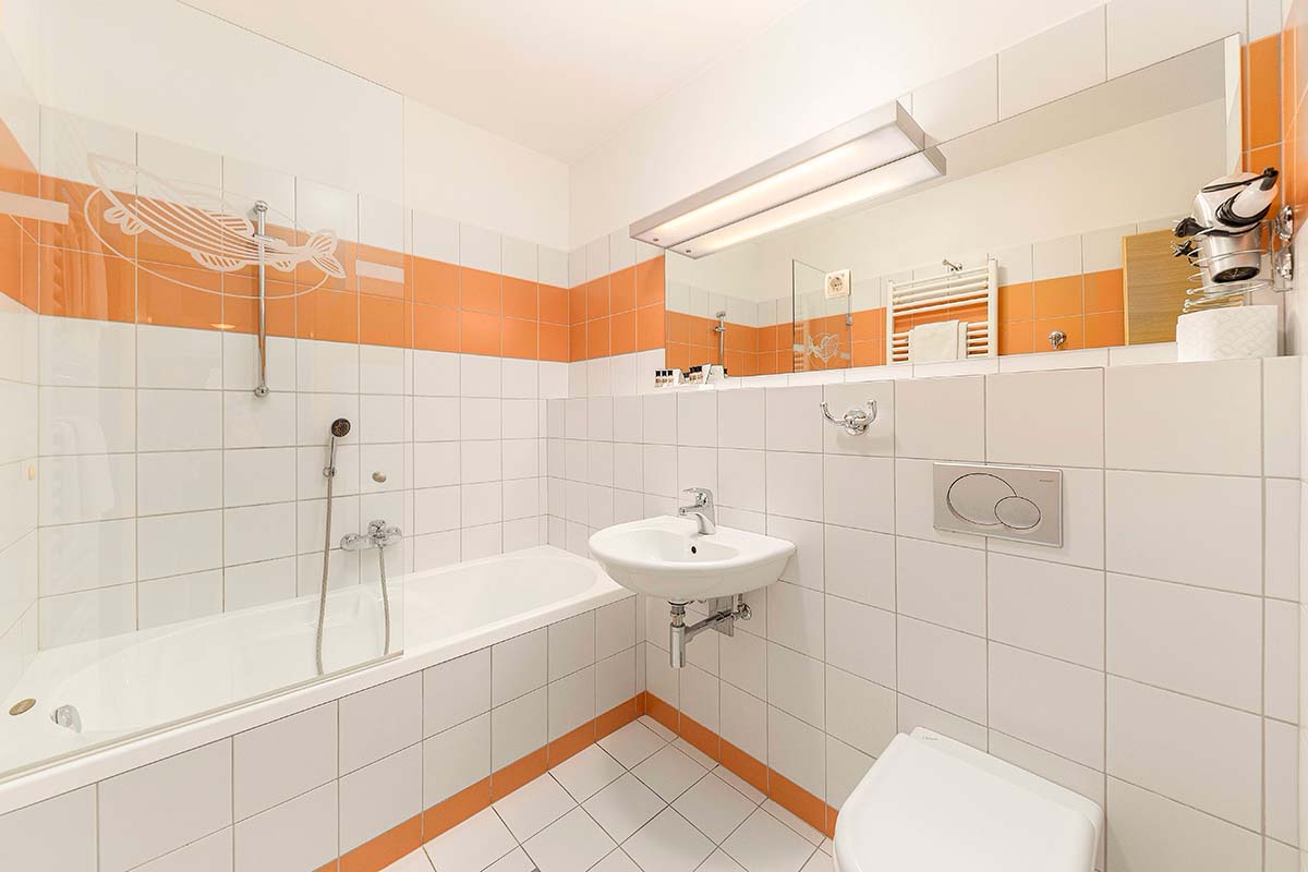 Kopalnica s tušem in kopalno kadjo ter WC prostor poskrbita za popolno zasebnost in dobro počutje. Jutro pa naj se začne brez hitenja – z okusnim zajtrkom, ki vas pripravi na nov dan doživetij.